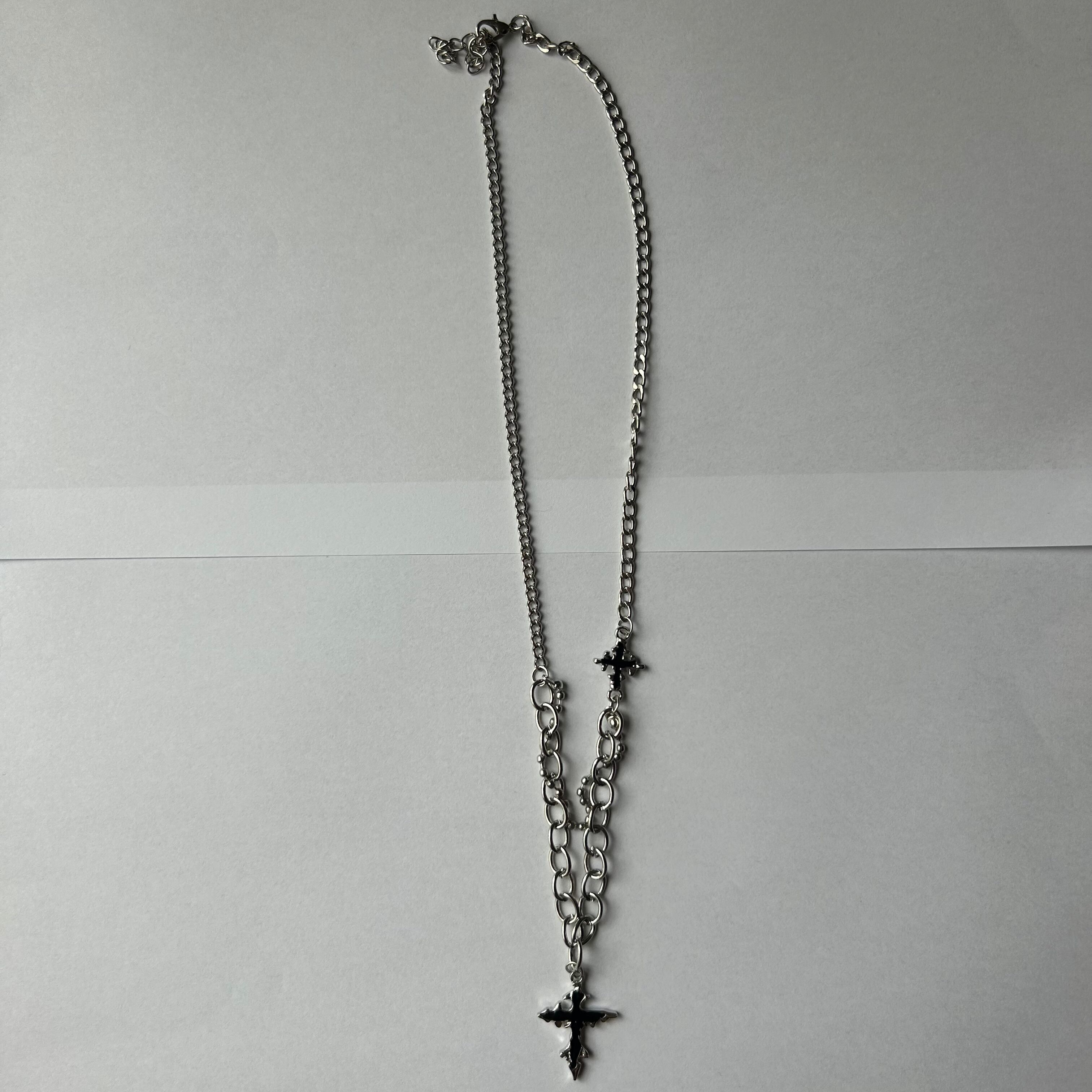 ごつめのクロスチャームが印象的なシルバーネックレス。